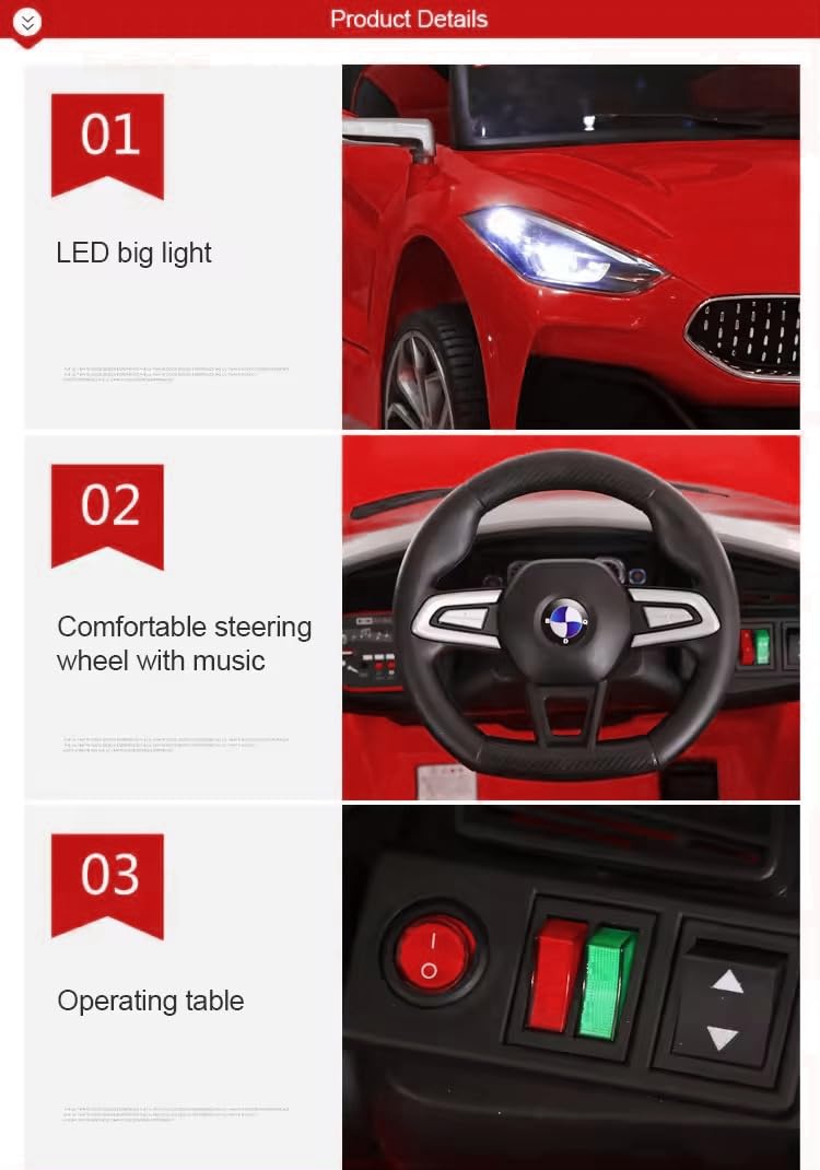 - Ride on car have realistic dashboard with front back speed switch, swing switch and music system compatible with aux, pen drive and memory card. Z4 ride on car have front and back working lights