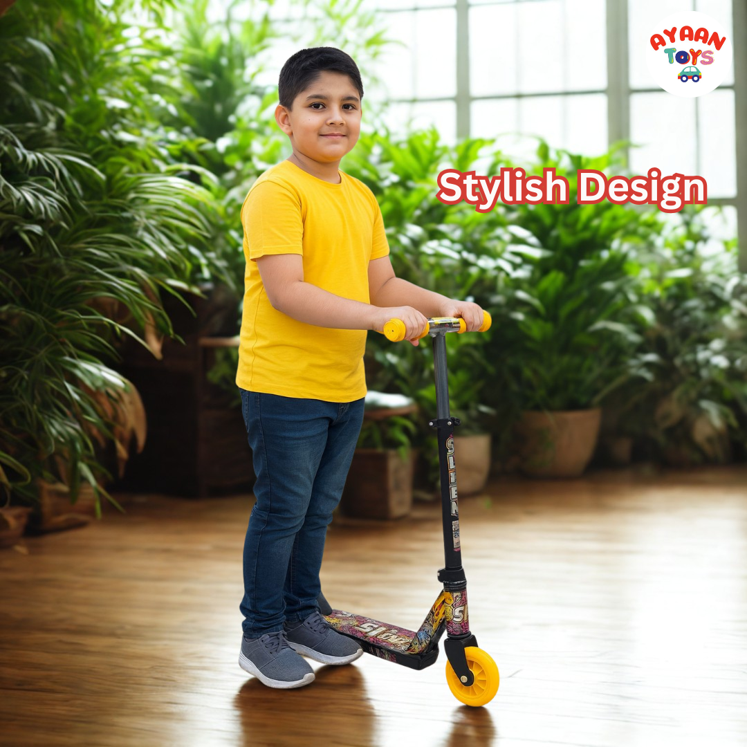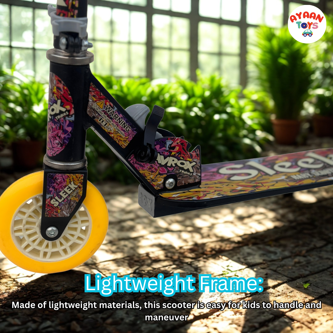 Ayaan Toys -SLEEK Kids Kick Scooter | Adjustable Height, Non-Slip Deck & Colorful Wheels | Durable & Lightweight Graphic color for Boys and Girls