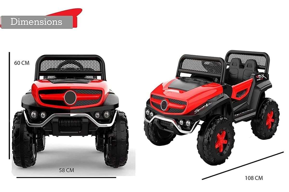 2288 Battery Operated Ride on Jeep for Kids with Music, Lights and Swing- Electric Remote Control Ride on Jeep for Children to Drive of Age 1 to 6 Years. India and made up of non toxis material. Electric ride on jeep is ideal for your kid's first ride in terms of safety and performance. Kid can sit safely with the help of seat belt. The ride on jeep has Bluetooth remote control for parents to control jeep with in a range of 20m. Kids can rid this jeep manually using foot accelerator on any flat surface. Jeep will run for 45mins to 1:25 hours after full charge of 6-7 hours. It comes with 2x6v4ah batteries and two motors, it will run for at a speed of 5-km/hr. While driving kid can listen to their favorite music by connection their own device