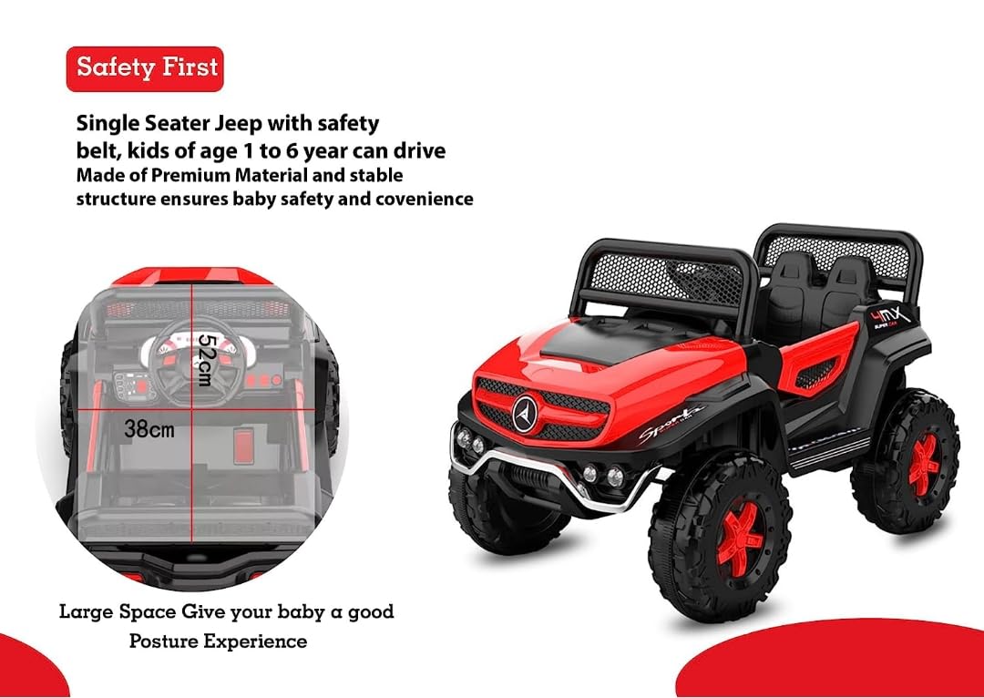 - Safety First: The well-being of your child is our top priority, which is why this electric jeep is constructed from non-toxic, high-quality plastic, ensuring a safe and worry-free driving experience. The sturdy design and comfortable seat ensure a secure ride for your little ones.