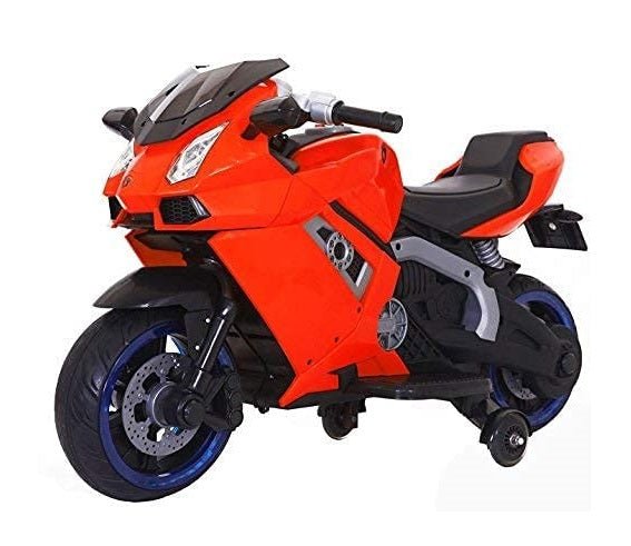 Battery Operated Electric Sports Ride on Battery Bike for 1 to 6 Years Kids/Boys/Girls with 12V Battery Operated/Music System/Working Lights/Training Wheels-Red