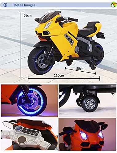 Battery Operated Electric Sports Ride on Battery Bike for 1 to 6 Years Kids/Boys/Girls with 12V Battery Operated/Music System/Working Lights/Training Wheels-Yellow